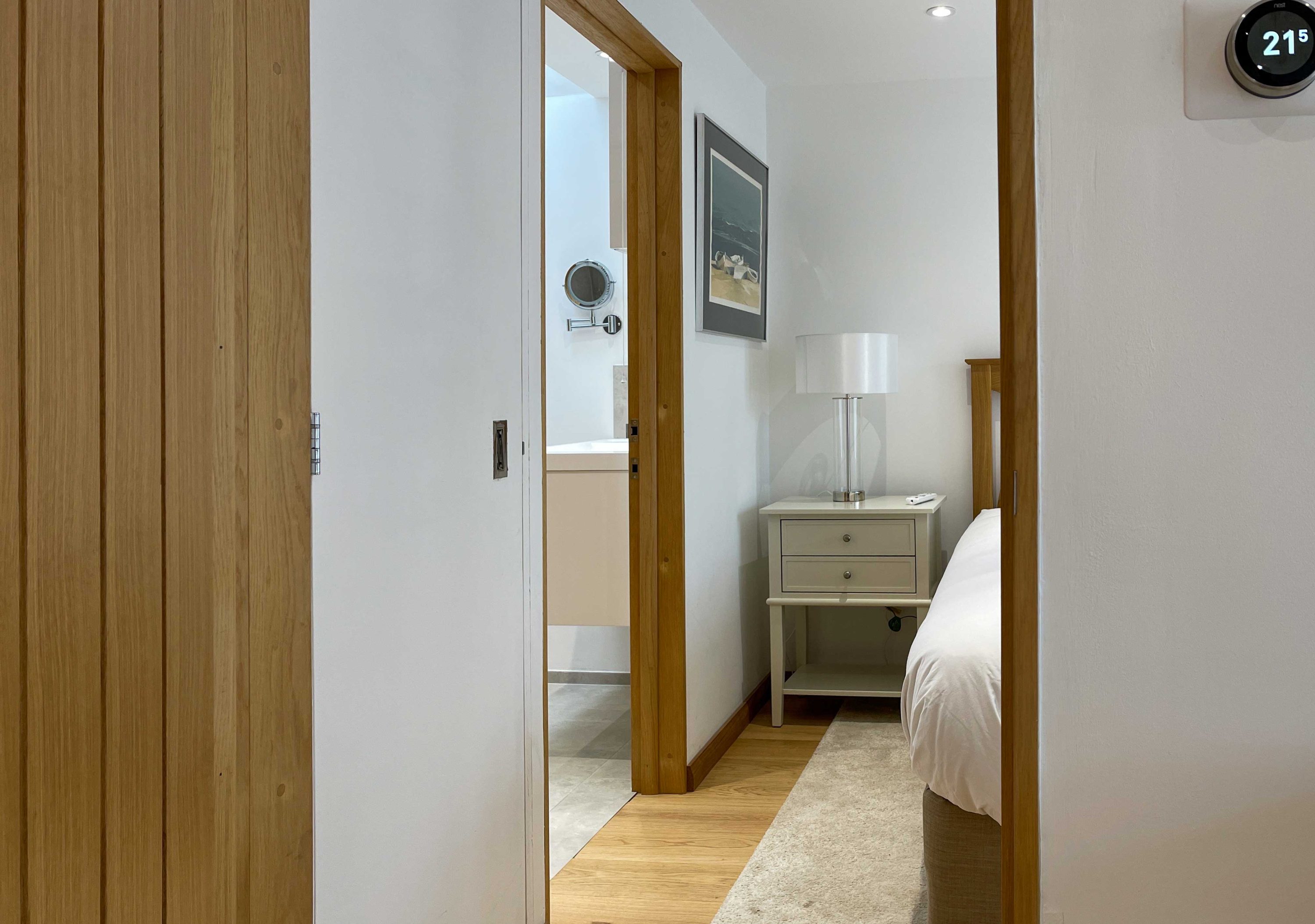 Whitley Old Garage is a detached former garage, renovated and converted in 2019/20 providing cosy/snug self-catering accommodation. Whitley Old Garage bedroom has a supremely comfortable handmade Vi-Spring pocket sprung mattress. The kitchen/living room has views onto the beautiful gravel driveway with a central tree with a teak seat around it and a scented rose flowerbed behind.
