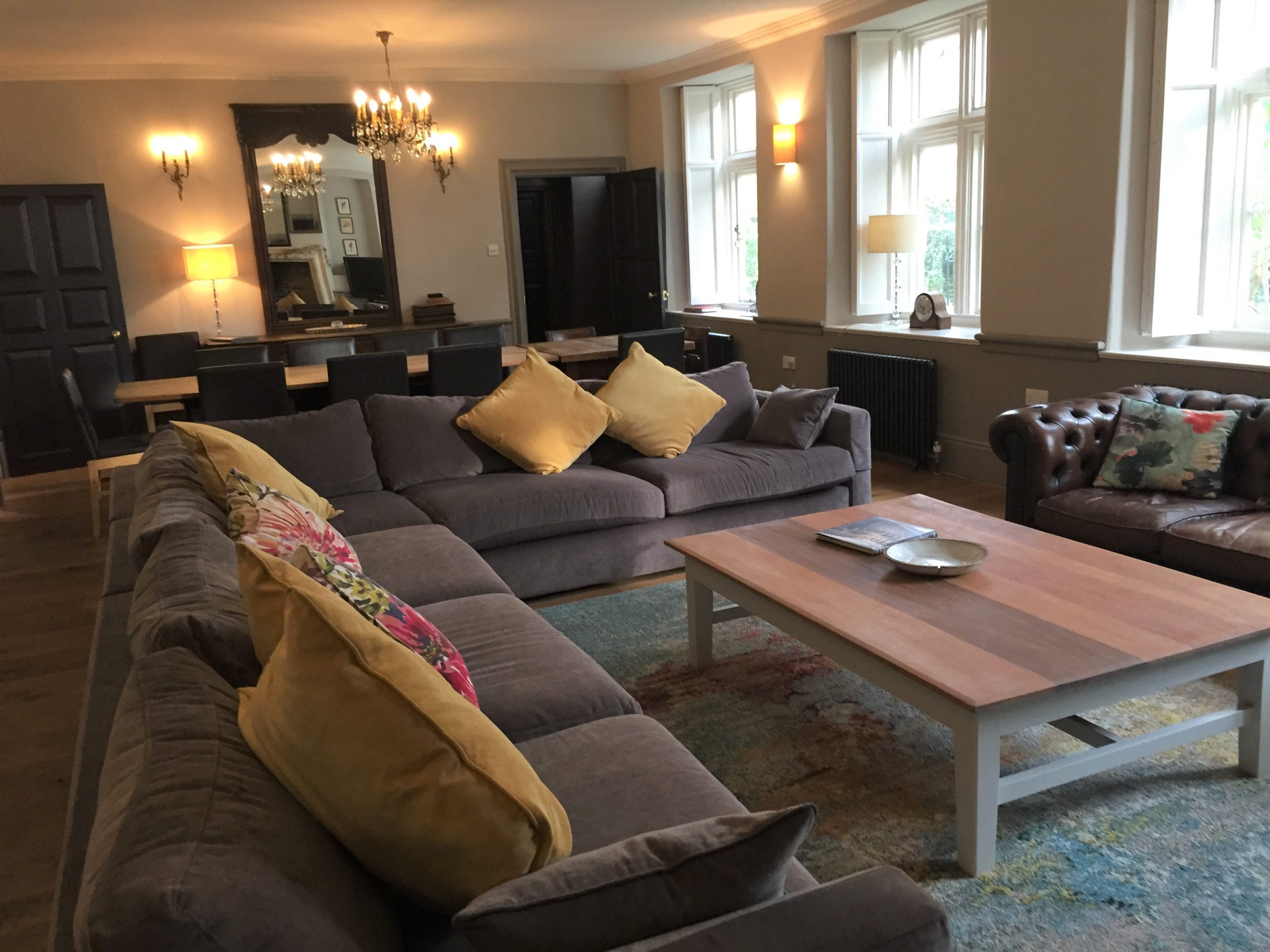You approach the West Wing through the main front door to the statuesque Manor Farm House. Relax in the spacious sitting room with four large sunny windows, oak dining table, huge comfy sofas, smart TV and Bluetooth music speaker. The ‘secret’ kitchen is fitted with a double oven, dishwasher, microwave and stylish retro fridge.